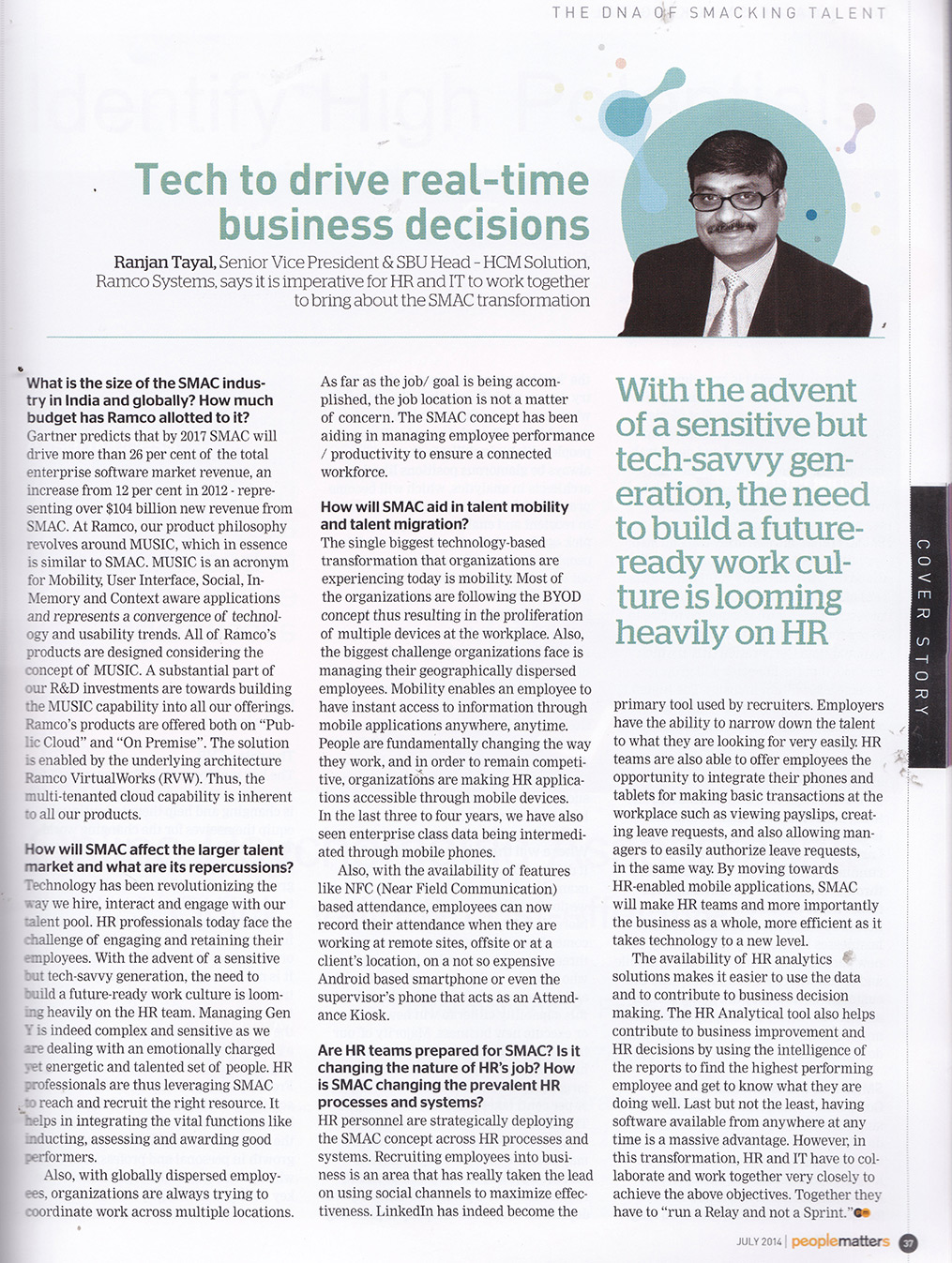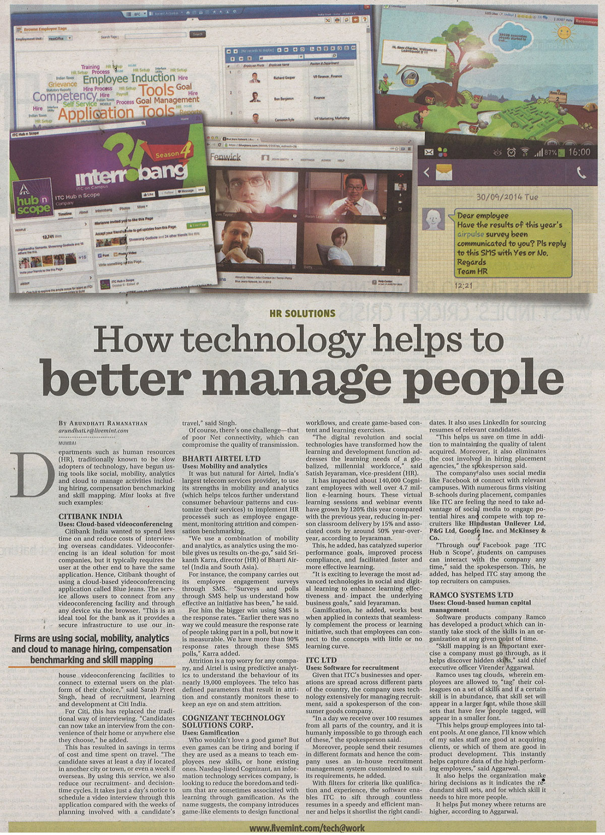 Insights into the adoption of SMAC for HR processes – HT Mint - October, 2014
