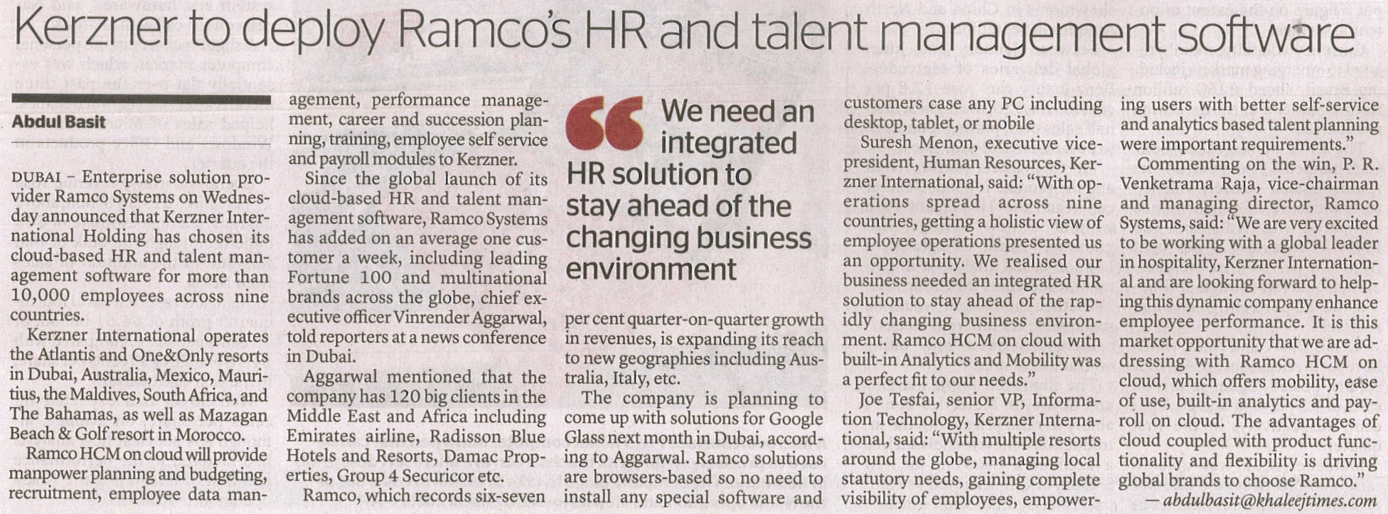 Ramco Systems' CEO in ET Now